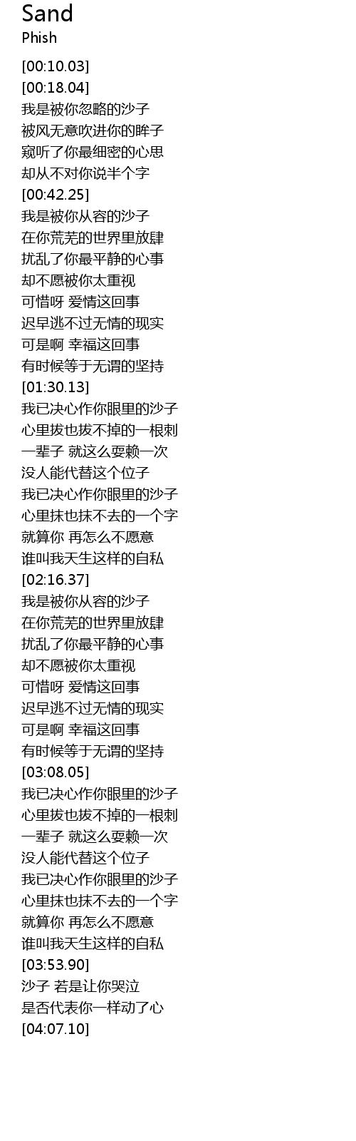 | [03:54.63] | 沙子 若是让你哭泣 |
