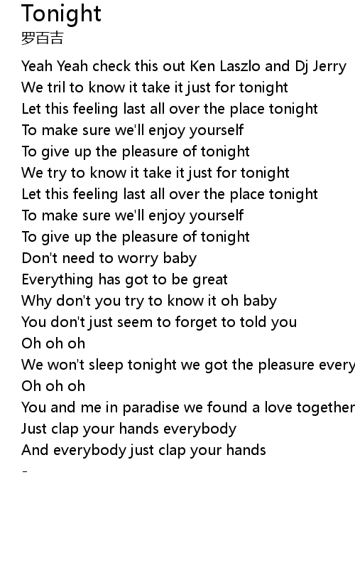 We tril to know it take it just for tonight |