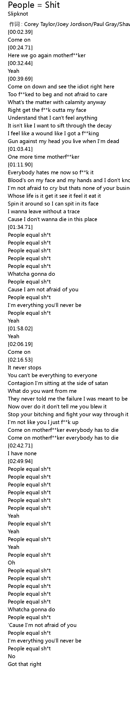 | [00:00.00] | 作词 : Corey Taylor/Joey Jordison/Paul Gray/Shawn Crahan (Clown) |
