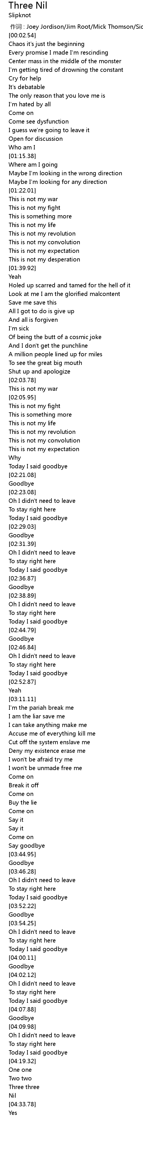 | [00:00.00] | 作词 : Joey Jordison/Jim Root/Mick Thomson/Sid Wilson |