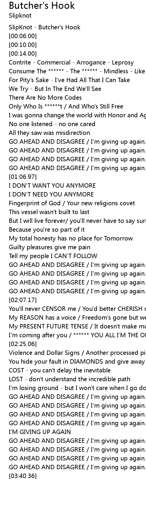 | [03:24.56] | GO AHEAD AND DISAGREE I' m giving up again |