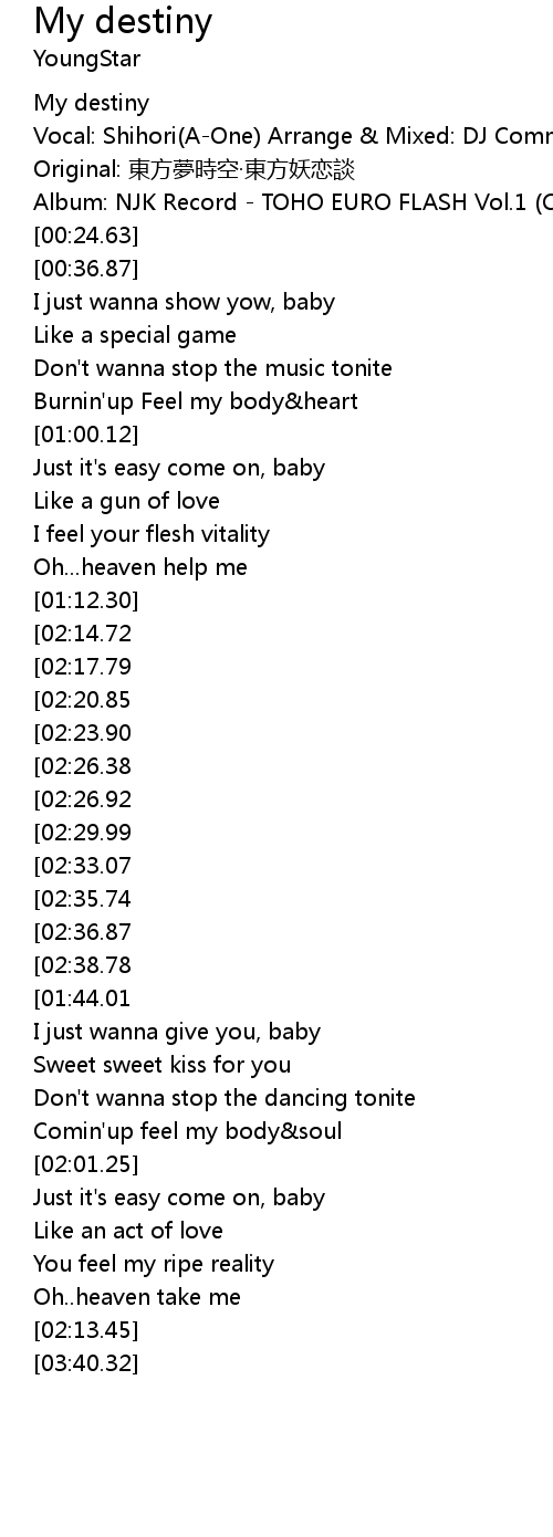 | [00:00.56] | My destiny |