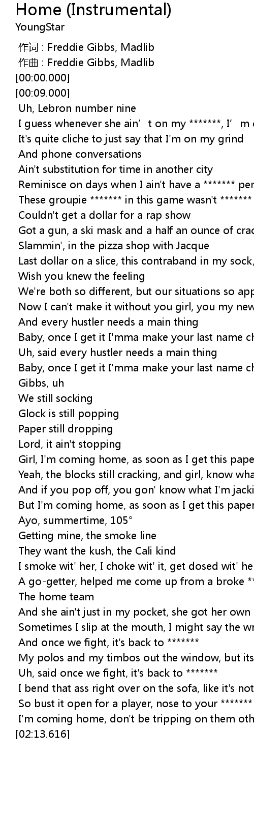 | [01:47.949] | I'm coming home, don't be tripping on them other hoes |