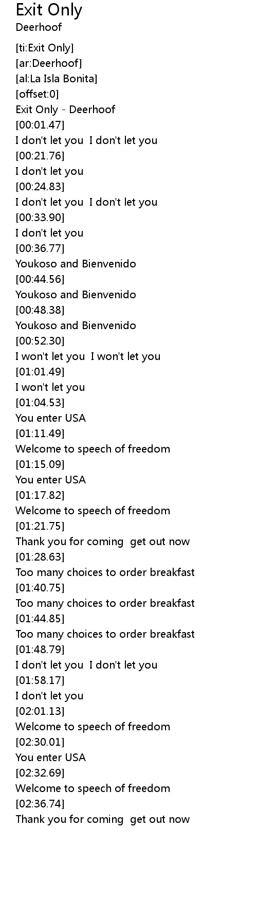 [00:00.40] Exit Only - Deerhoof