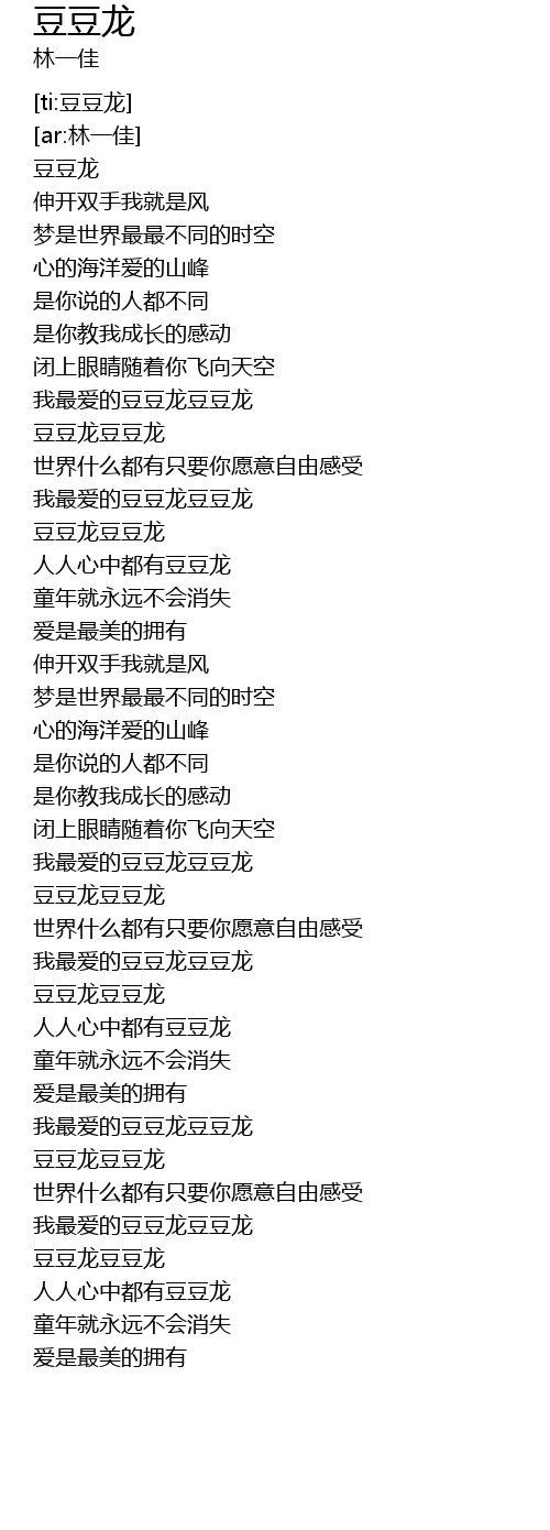 | [02:34.931] | 豆豆龙豆豆龙 |