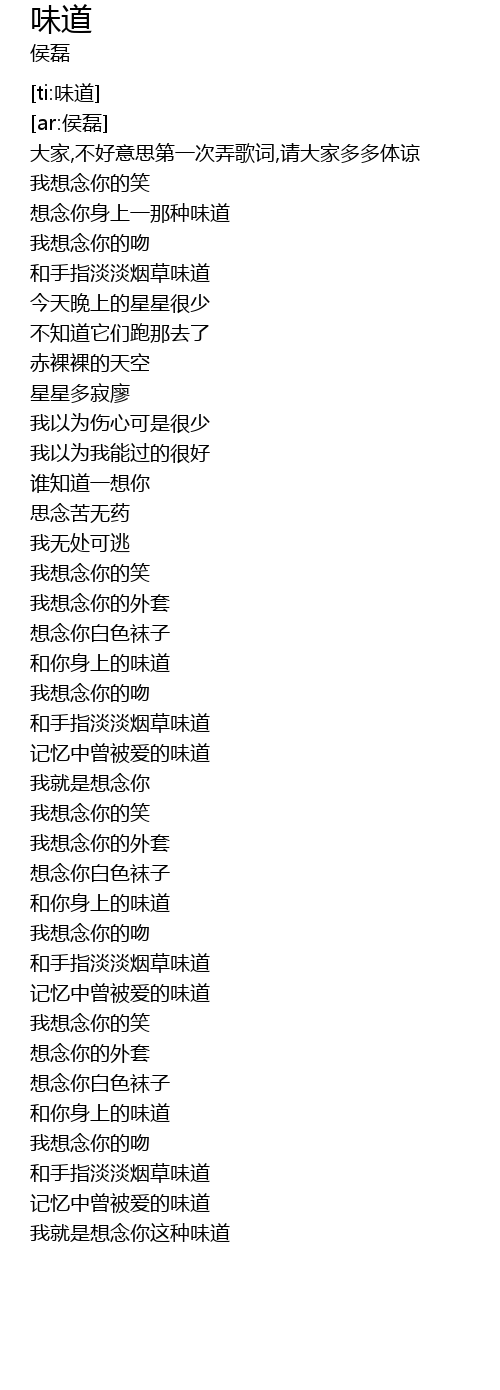 | [00:18.104] | 和手指淡淡烟草味道 |