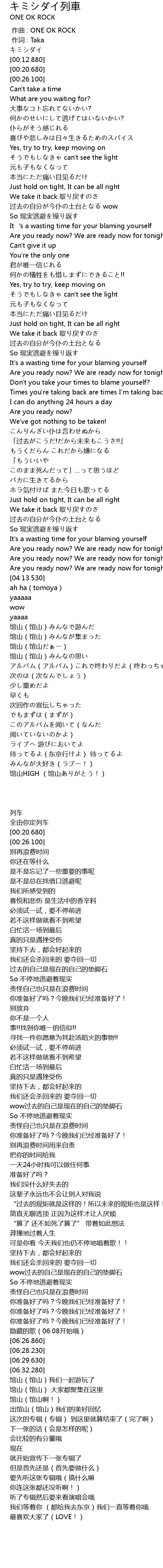 | [00:00.00] | zuo qu : ONE OK ROCK |