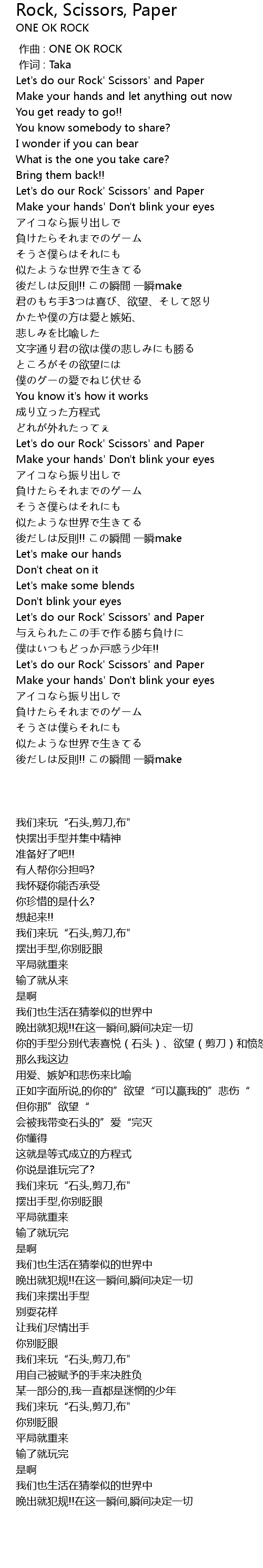 | [00:00.00] | 作曲 : ONE OK ROCK |