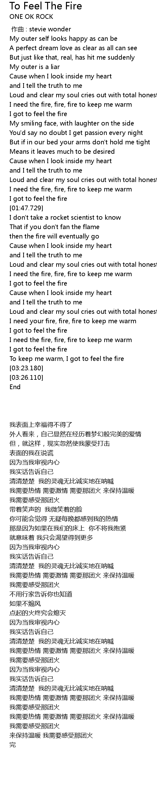 | [00:43.980] | I need the fire, fire, fire to keep me warm |