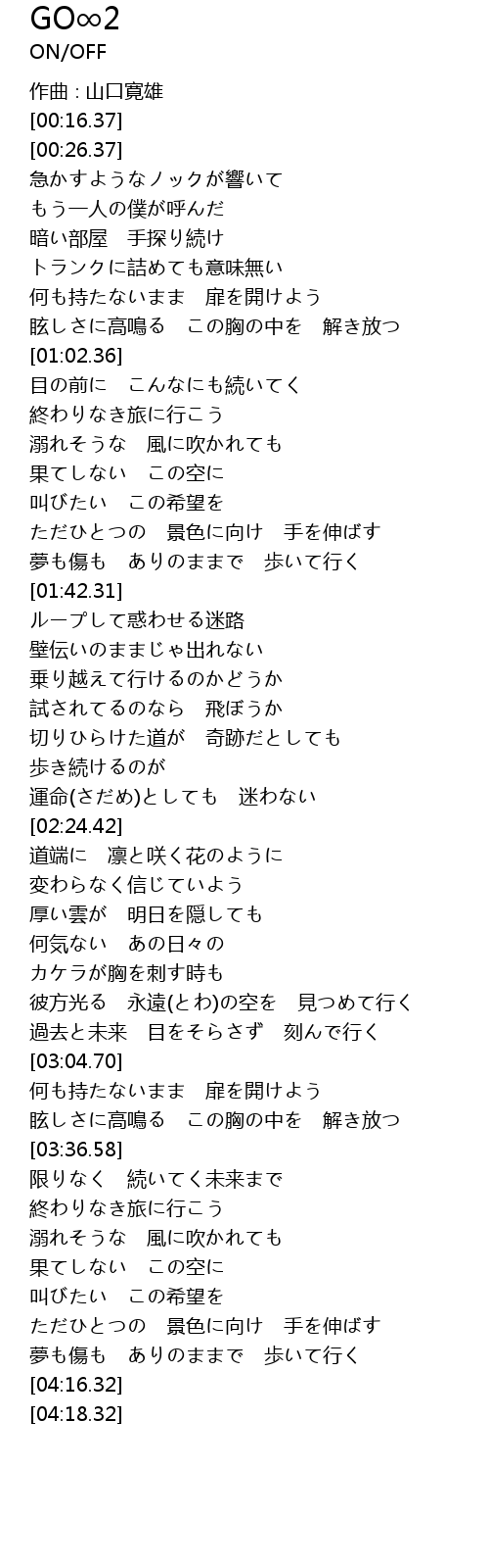 | [03:43.32] | 終わりなき旅に行こう |