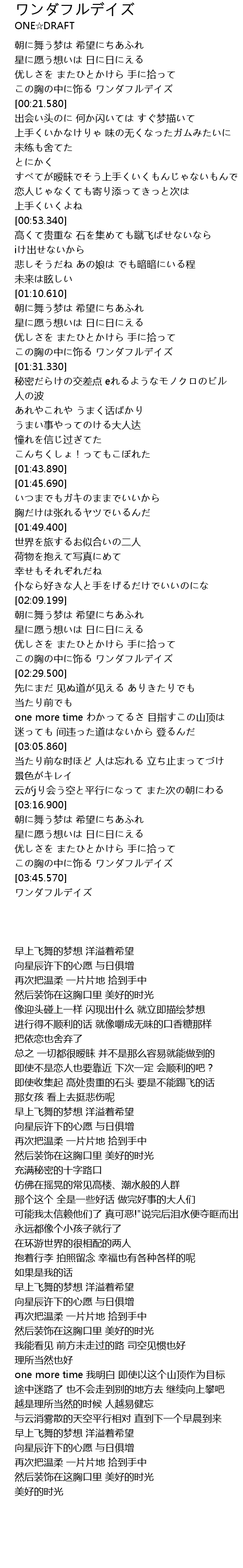 | [01:25.289] | この胸の中に饰る ワンダフルデイズ |