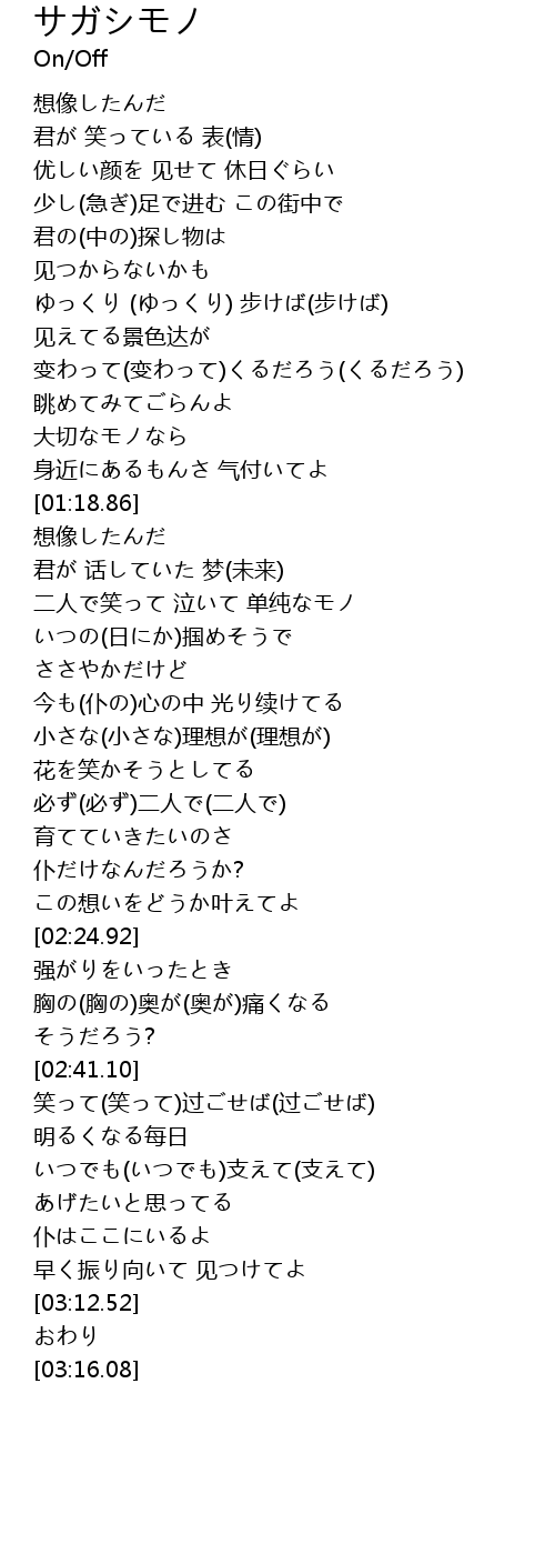 | [00:41.24] | 君の(中の)探し物は |