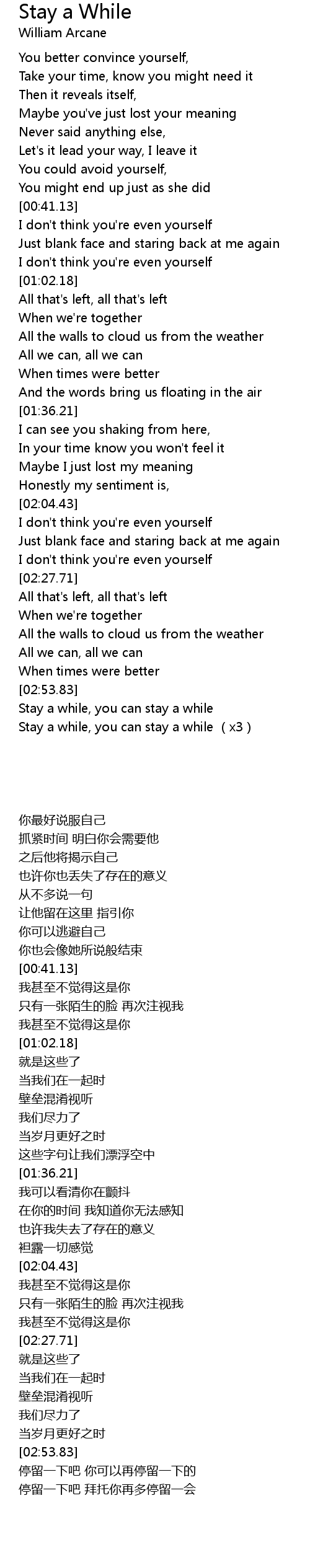 | [03:14.05] | Stay a while, you can stay a while (x3) |