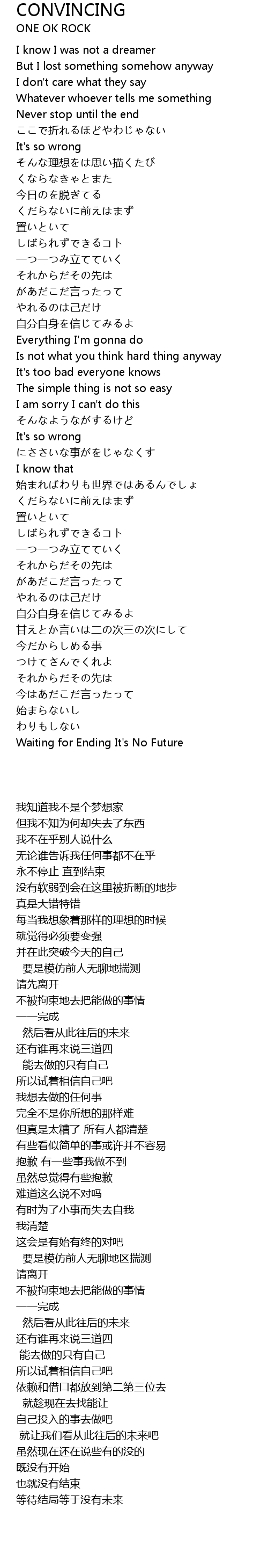 | [03:06.50] | Waiting for Ending It' s No Future |