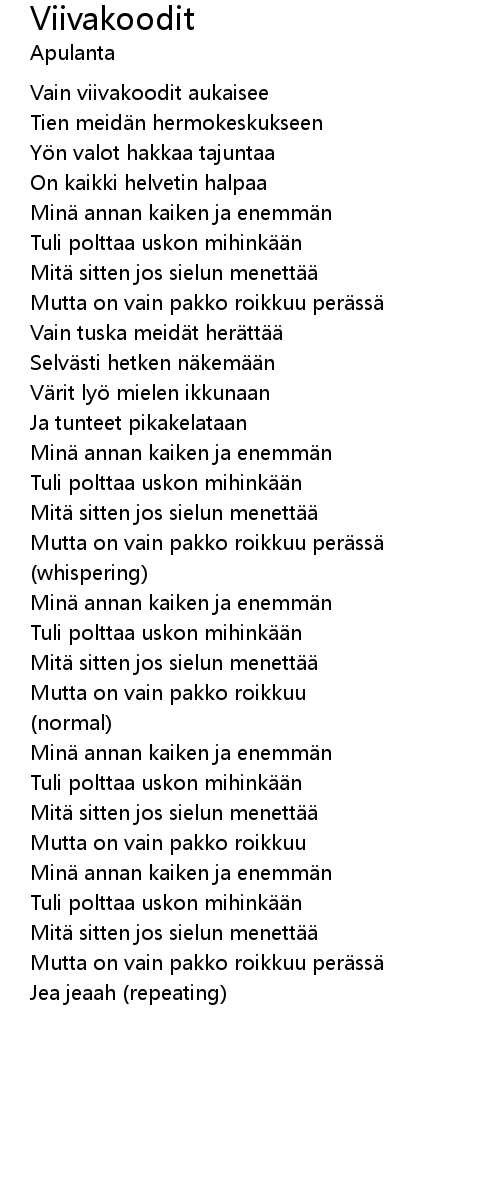 | 歌曲 | Viivakoodit |