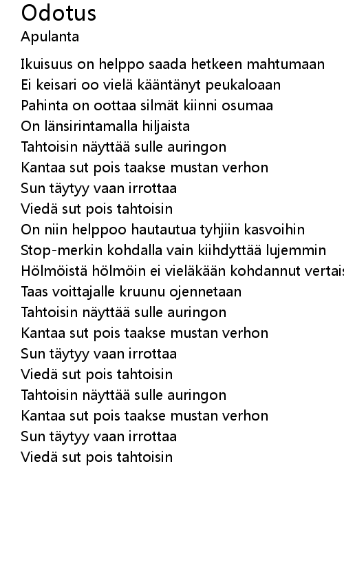 | Pahinta on oottaa silm t kiinni osumaa | |