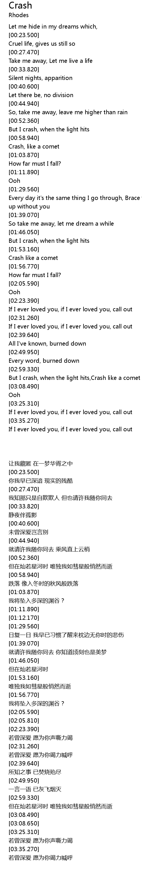 But I crash, when the light hits,Crash like a comet |