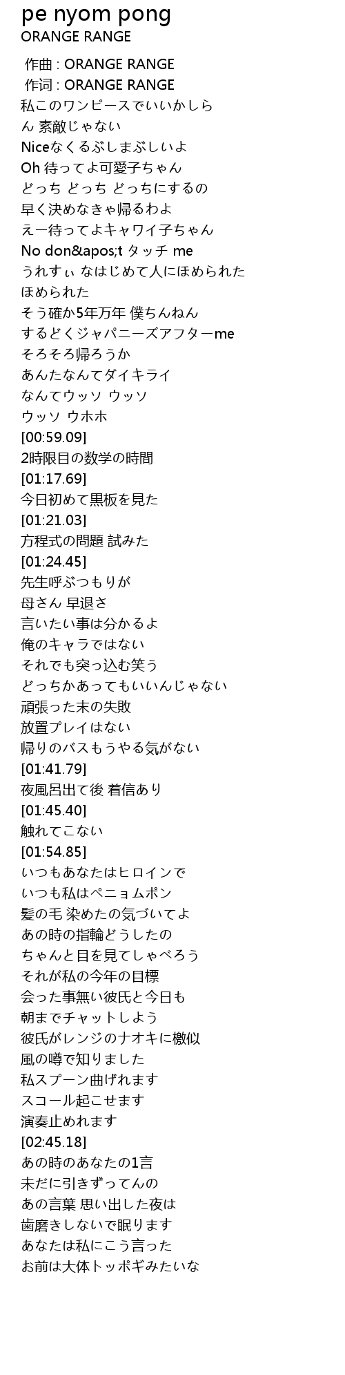 | [00:01.00] | 作词 : ORANGE RANGE |