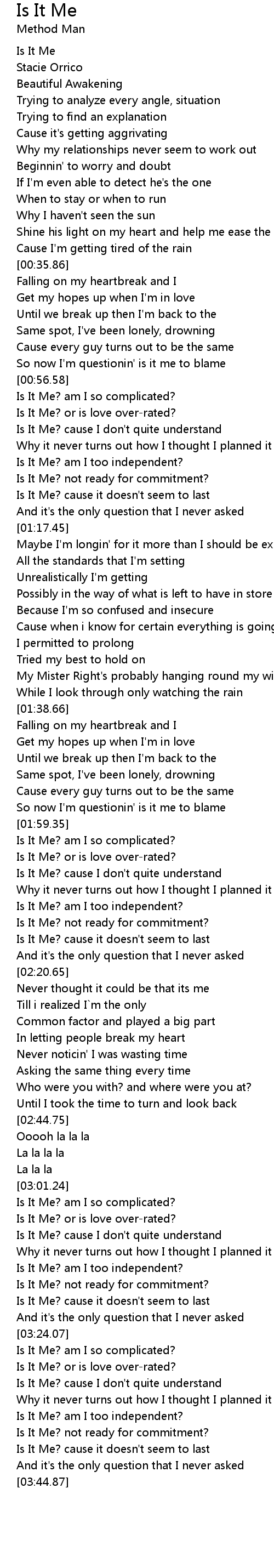 Is It Me? am I so complicated? |