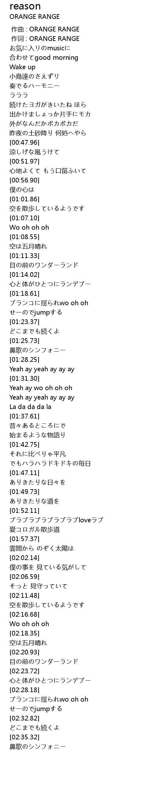 | [00:01.00] | 作词 : ORANGE RANGE |