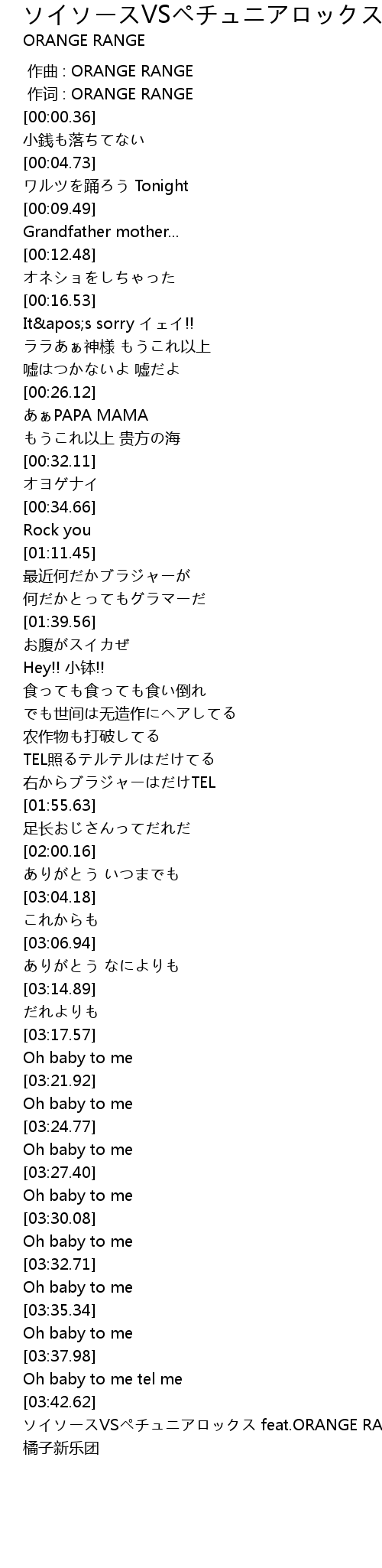 | [03:43.36] | ソイソースVSペチュニアロックス feat.ORANGE RANGE - 橘子新乐团 |