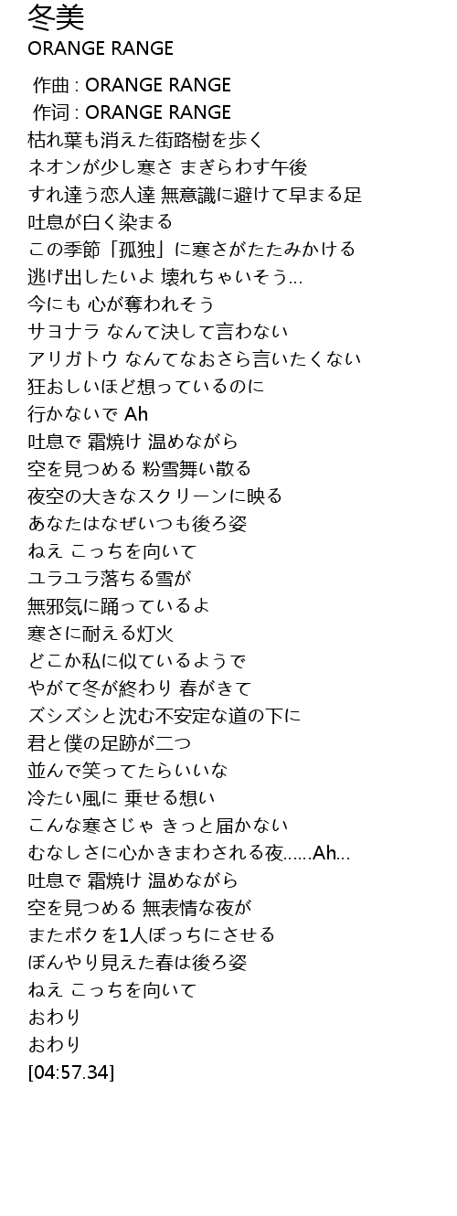 | [00:01.00] | 作词 : ORANGE RANGE |