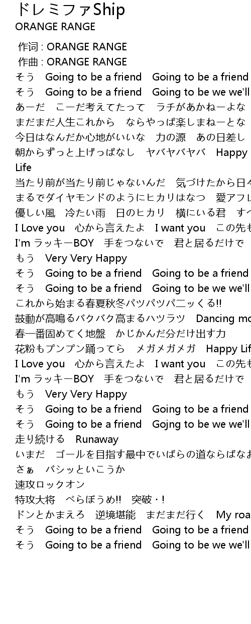 | [00:00.000] | 作词 : ORANGE RANGE |