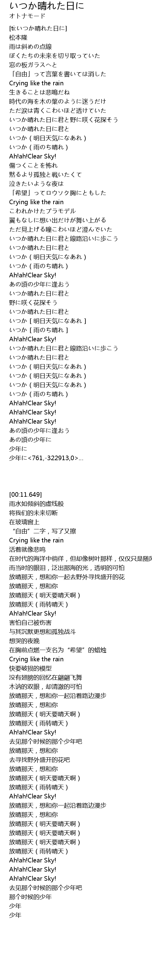 | [03:16.415] | いつか(雨のち晴れ) |