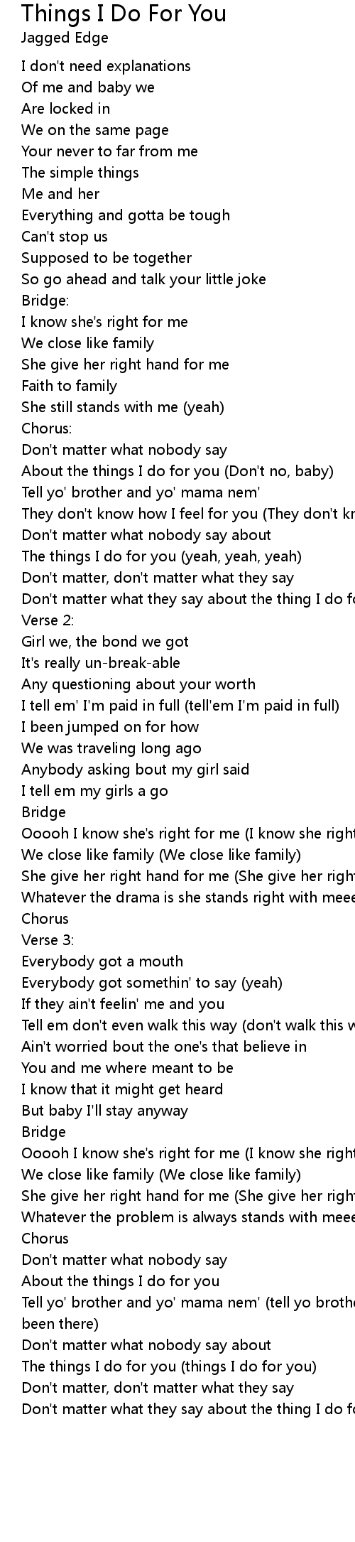 About the things I do for you |
