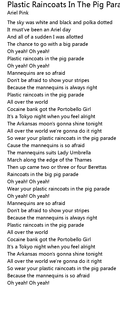 So wear your plastic raincoats in the pig parade |