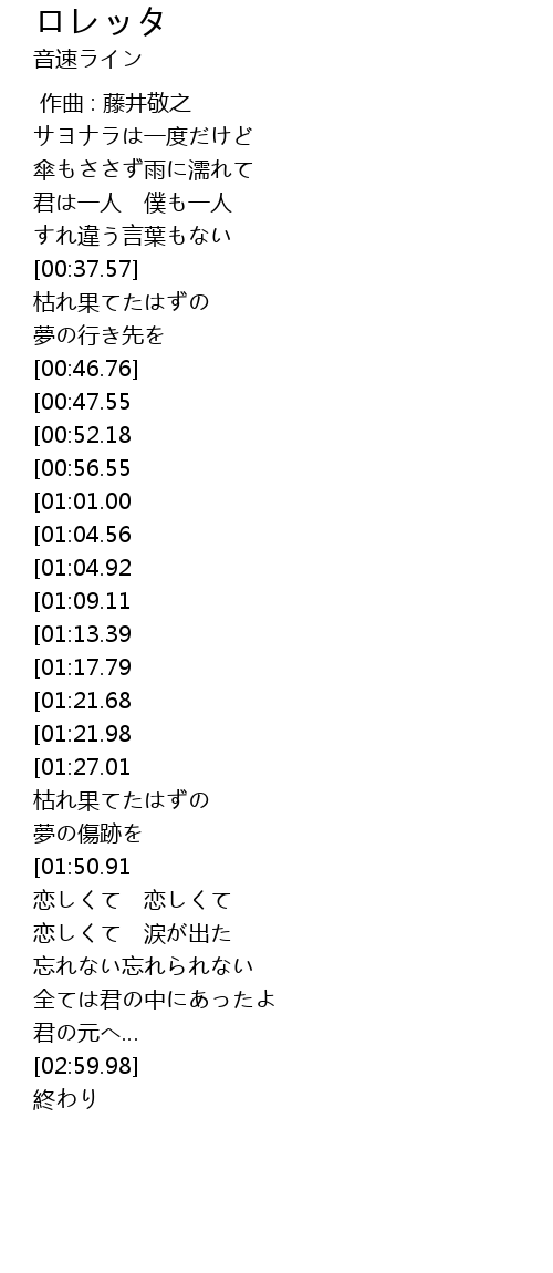 | [03:01.98] | 終わり |