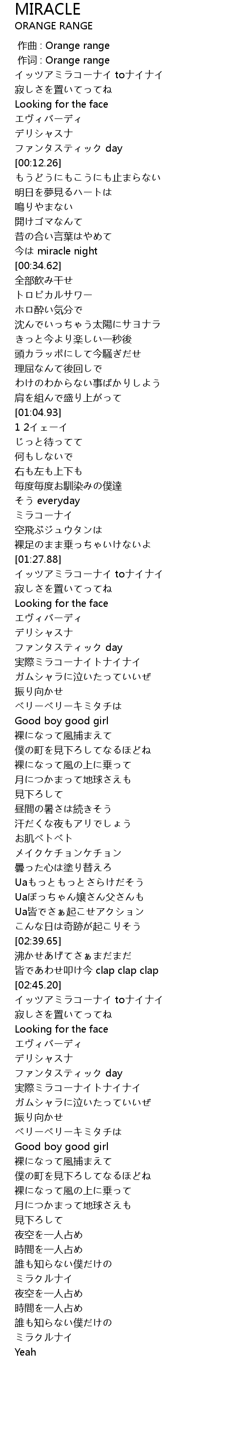 | [03:51.94] | ミラクルナイ |