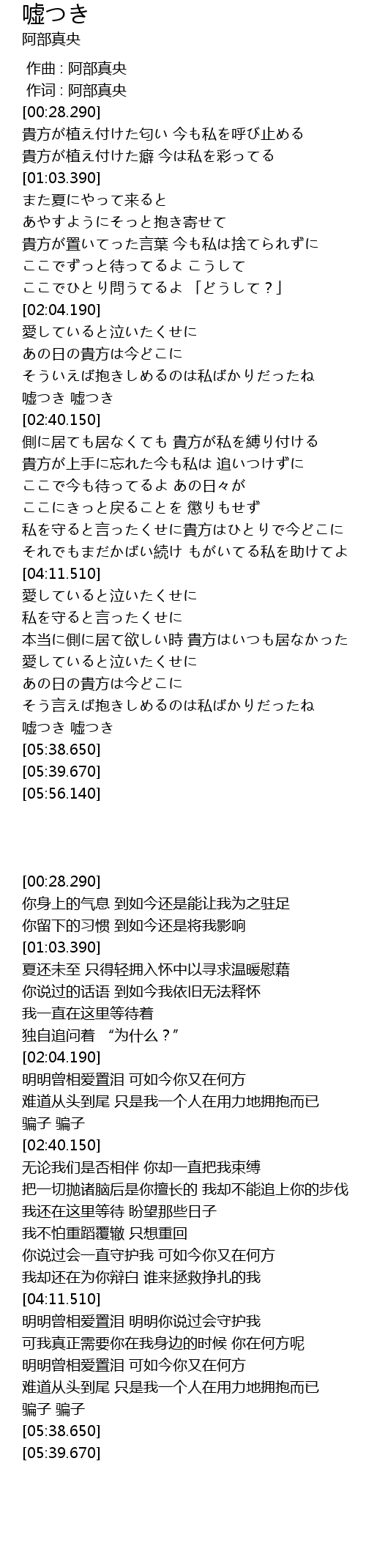 | [02:28.830] | 嘘つき 嘘つき |