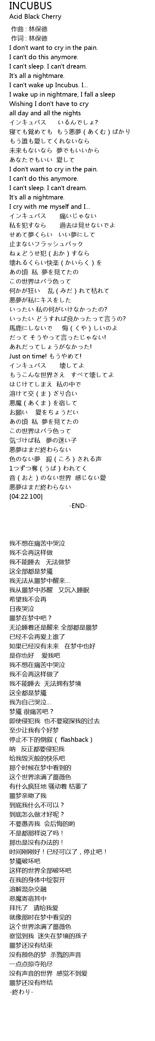 | [00:44.100] | I can' t wake up Incubus. I... |