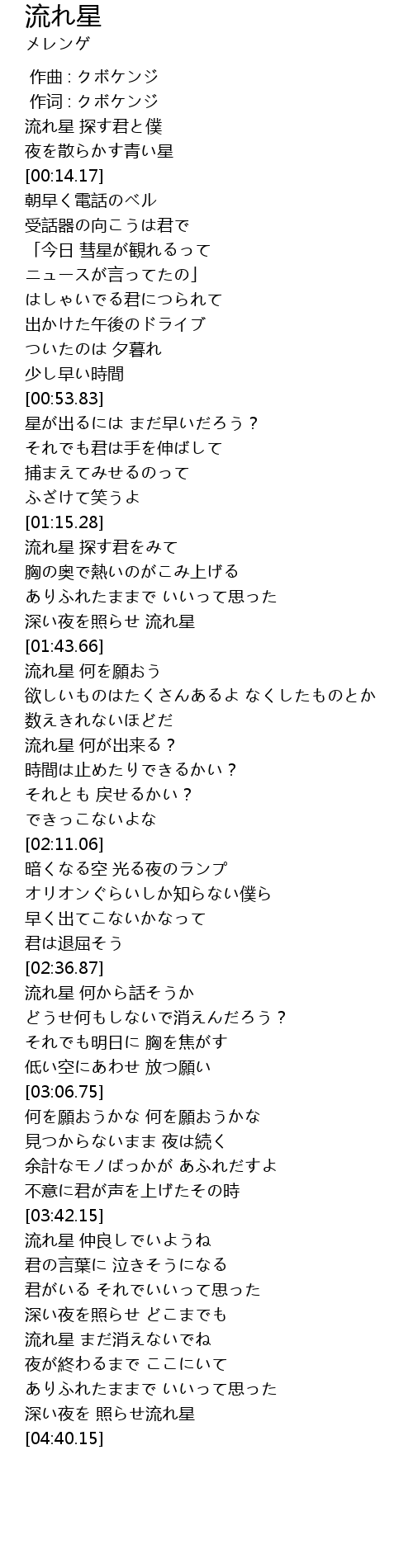 | [02:40.61] | 流れ星 何から話そうか |