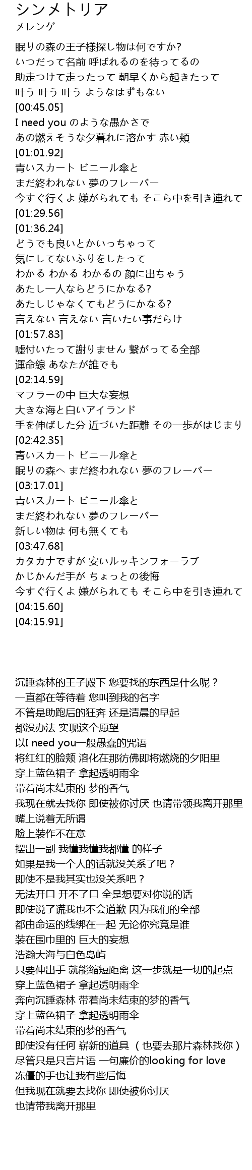 | [03:24.56] | 青いスカート ビニール傘と |