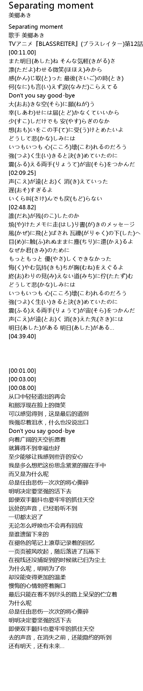 | 歌曲 | Separating moment |