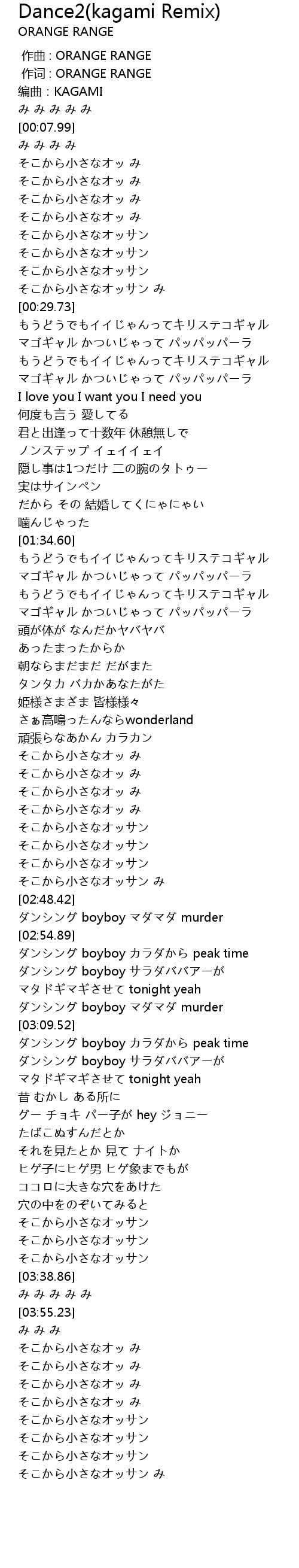 | [00:00.00] | 作曲 : ORANGE RANGE |