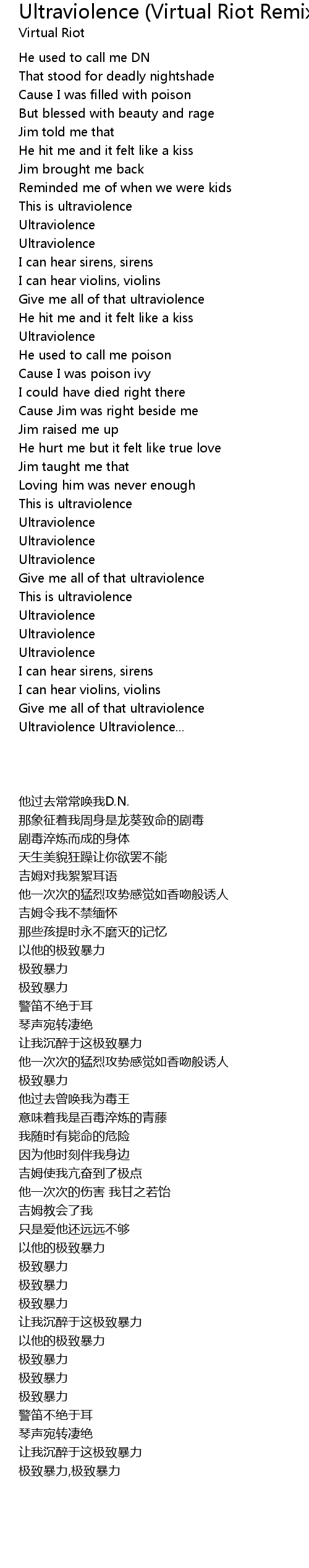 Ultraviolence (Virtual Riot Remix) 歌词