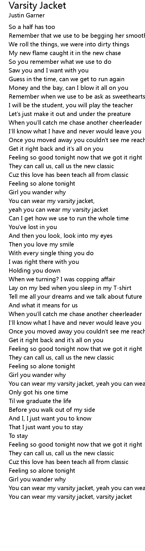 You can wear my varsity jacket, yeah you can wear my varsity |