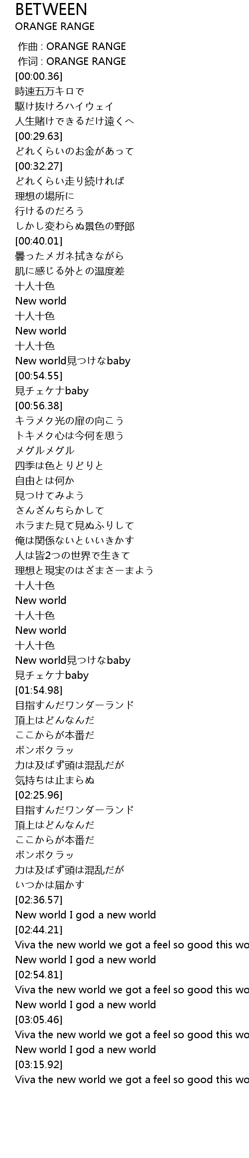 | [00:00.12] | 作词 : ORANGE RANGE |