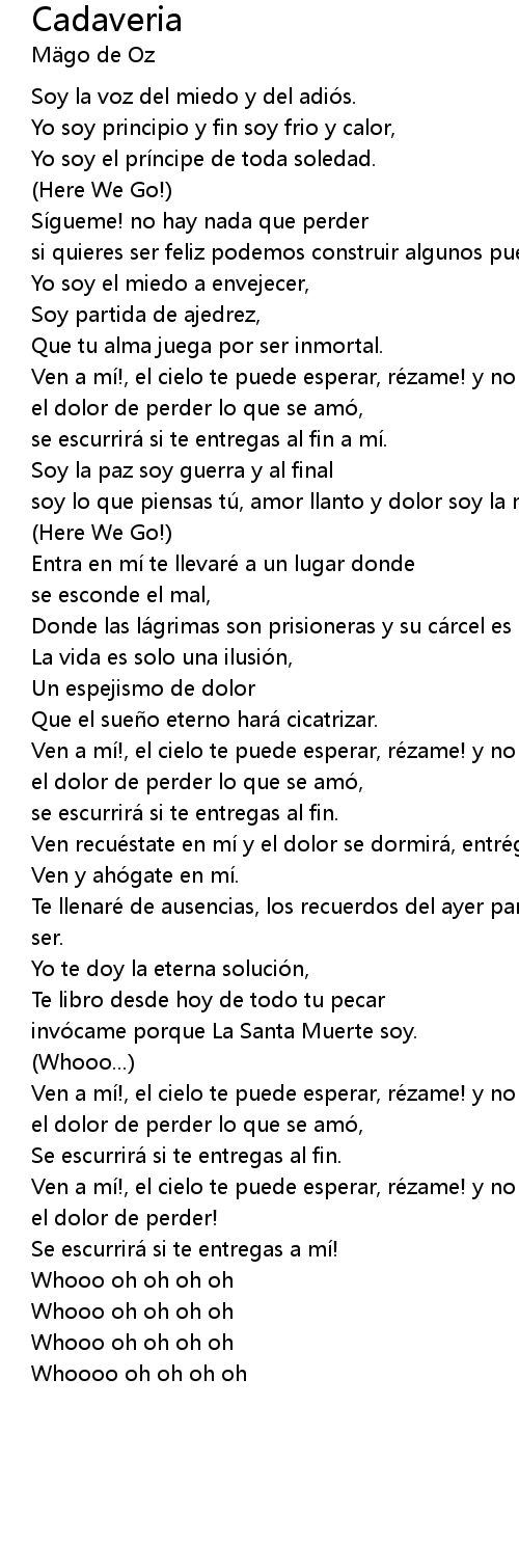 | soy lo que piensas tu, amor llanto y dolor soy la manzana envenenada del ede n. Here We Go! | |