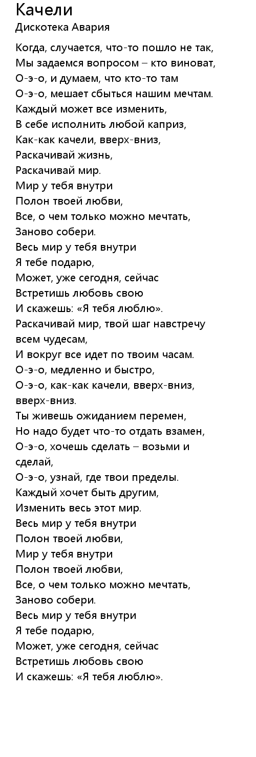 Качели 歌词