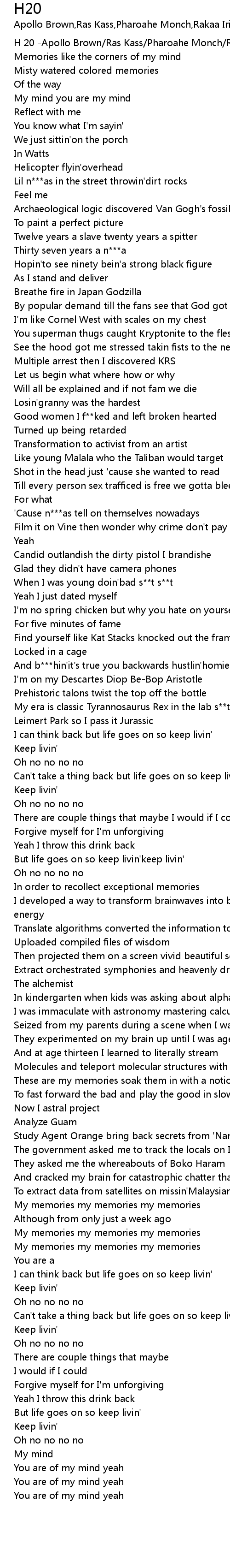 H 20 -Apollo Brown/Ras Kass/Pharoahe Monch/Rakaa Iriscience |
