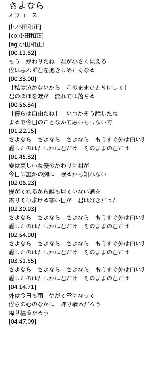 | [03:30.46] | さよなら さよなら さよなら もうすぐ外は白い冬 |