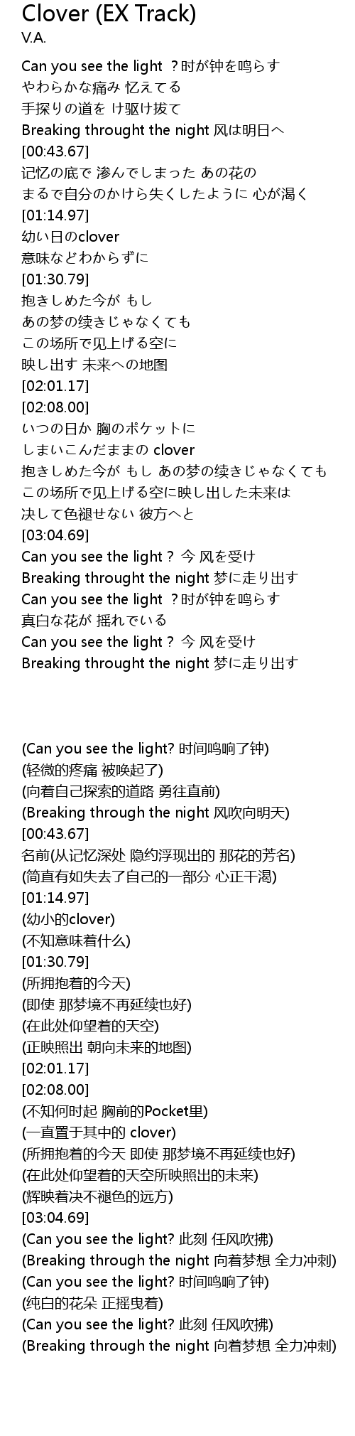 | [02:23.69] | (一直置于其中的 clover) |
