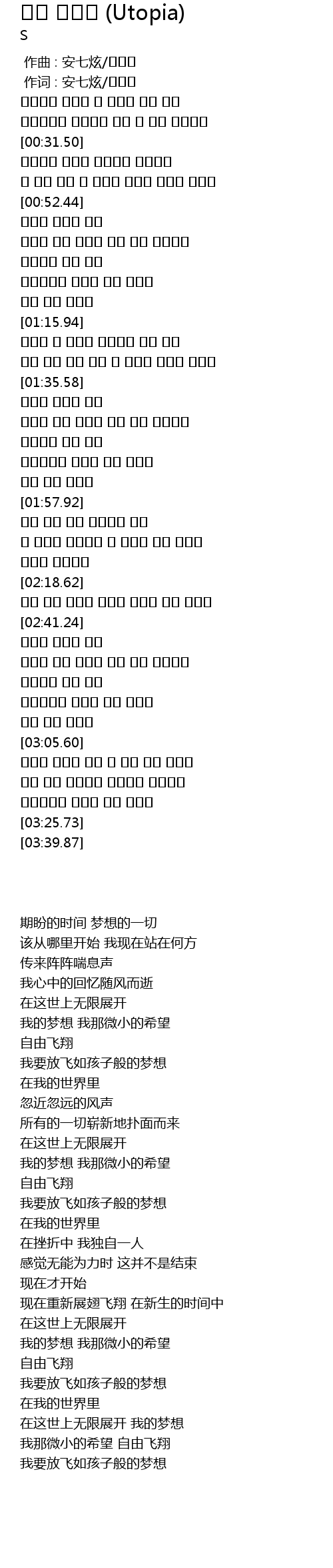 | [00:01.00] | 作词 : 安七炫/송광식 |