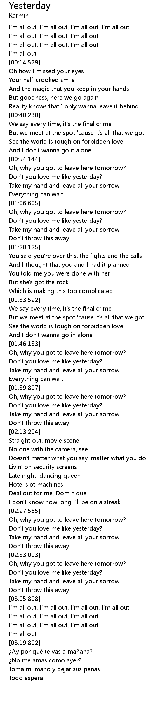 | [00:01.350] | I'm all out, I'm all out, I'm all out, I'm all out |