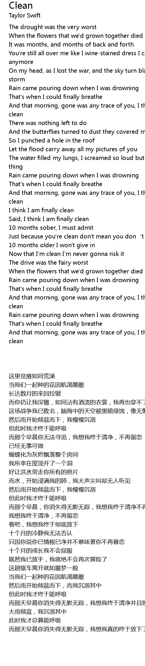 | [02:22.800] | And that morning, gone was any trace of you, I think I am finally clean |