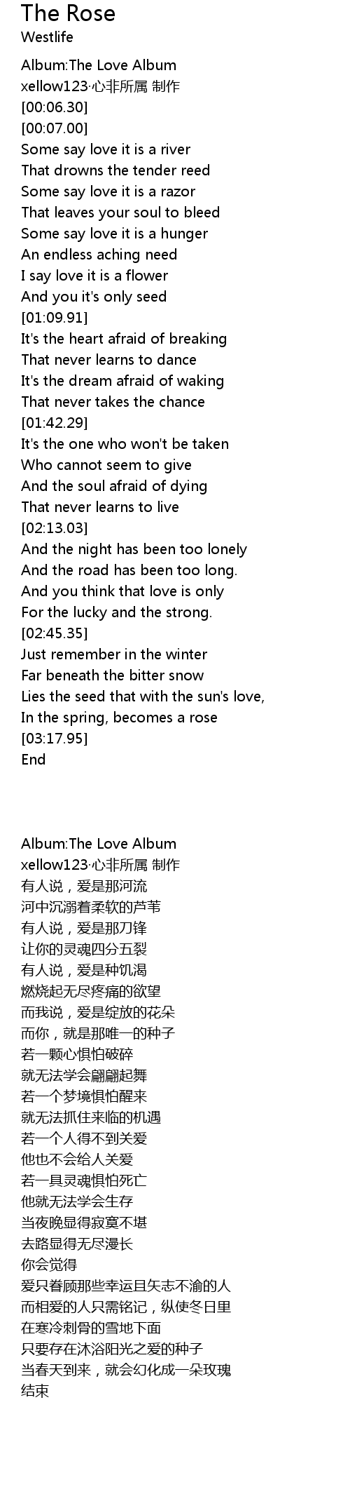 | [00:04.20] | Album: The Love Album |